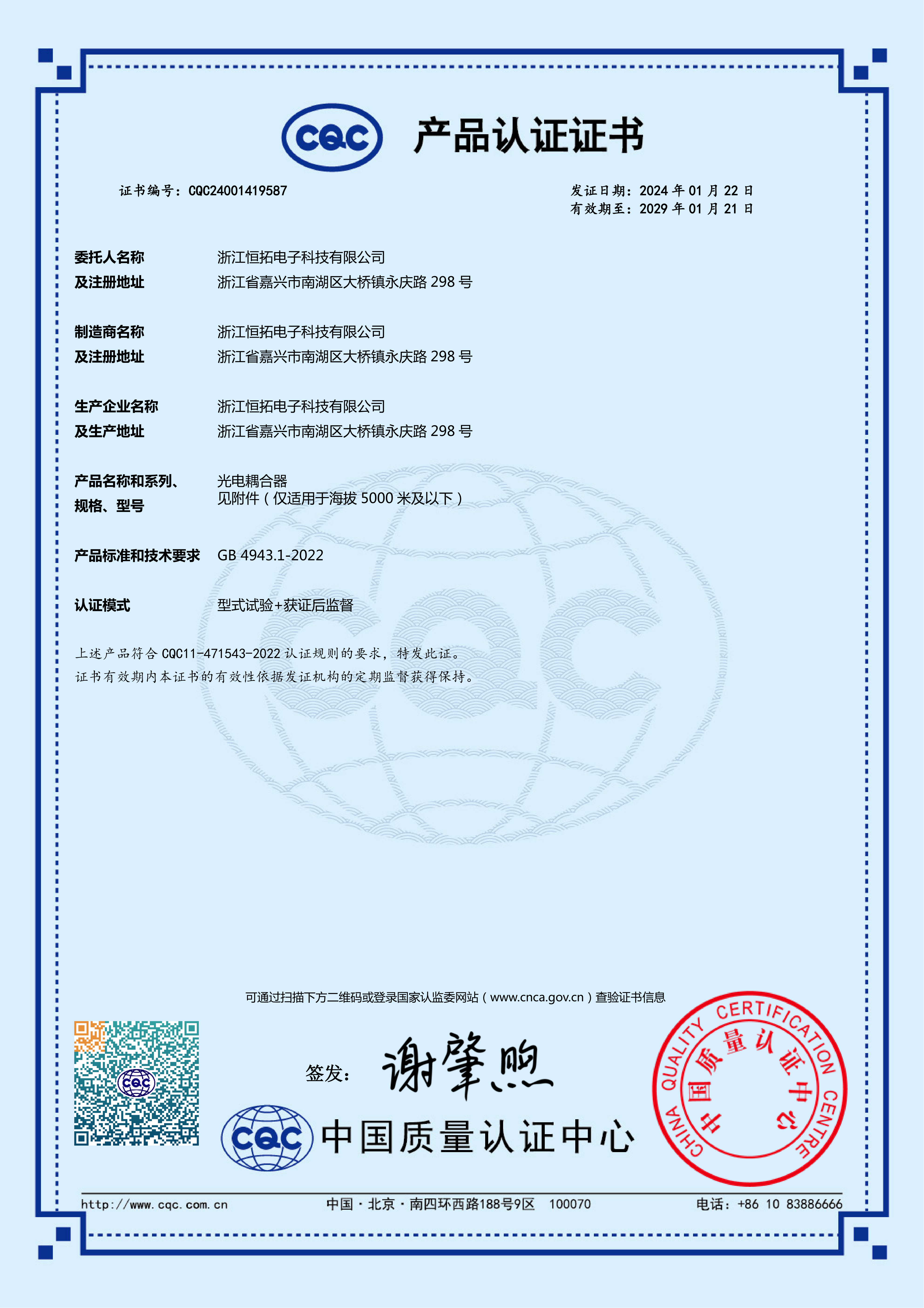 Zhejiang Hengtuo Electronic Technology Co., Ltd. was incorporated.